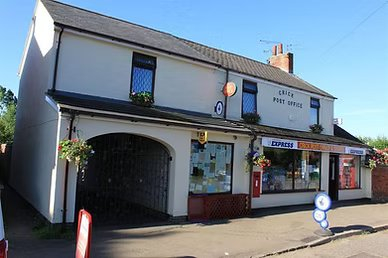 Post Office & grocery stores with butcher selling Village Meats.