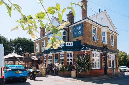 A historic village pub with a cosy yet spacious interior spread across several rooms. There is also a large, leafy garden.